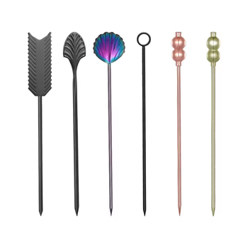 Benutzer definierte Schwarz Silber 11cm Bar Werkzeug Edelstahl Cocktail Pick Metall Getränke Kaffee Rührer Food Picks für Italien Young Henrys